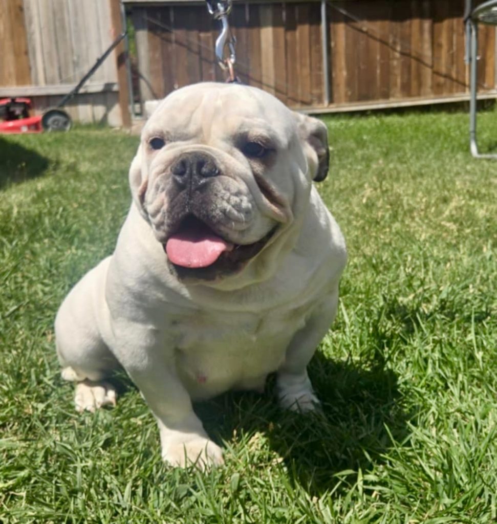 Meet Tank, standard AKC. We own this beautiful boy. He is health tested and developing perfectly. His parents and grandparents are Grand Champions. We will be showing him in the ring as well. We are excited to see how he performs in his class. He is strutting his stuff with the perfect ears, deep chest, and wrinkles galore. He is very well mannered and such a happy boy. His whole Fanny wiggles when he wags his tail. He does not have breathing issues or skin issues. His confirmation exceeds the breeds standard.